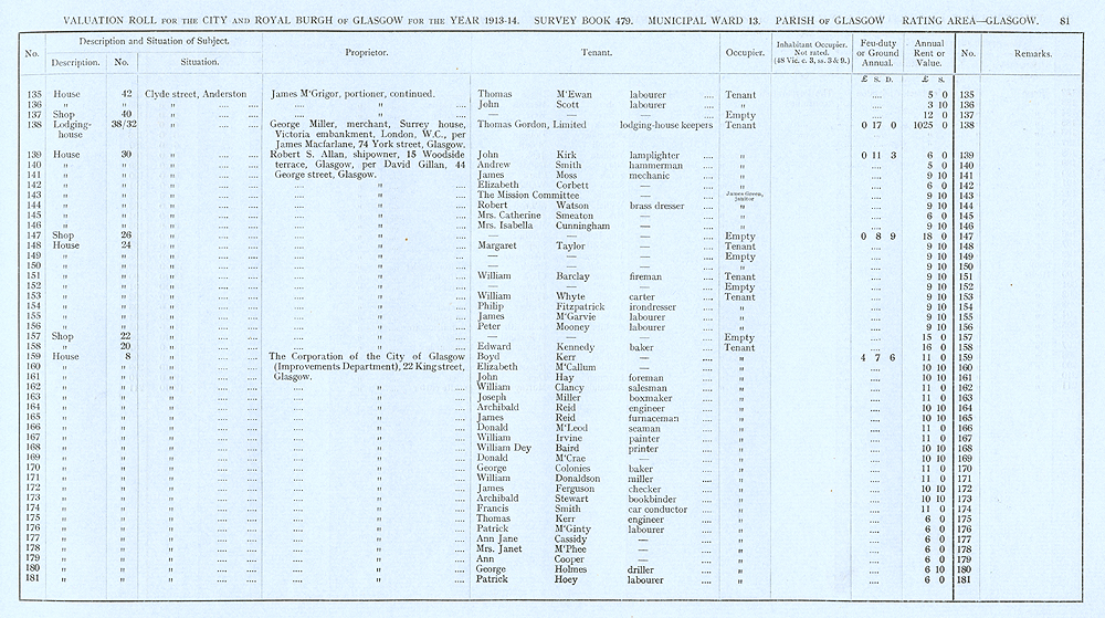 Glasgow Valuation Roll VR 1913-14, Ward 13, p081