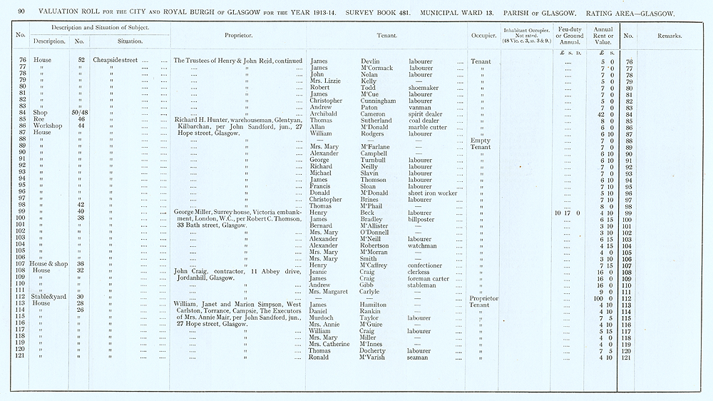 Glasgow Valuation Roll VR 1913-14, Ward 13, p090