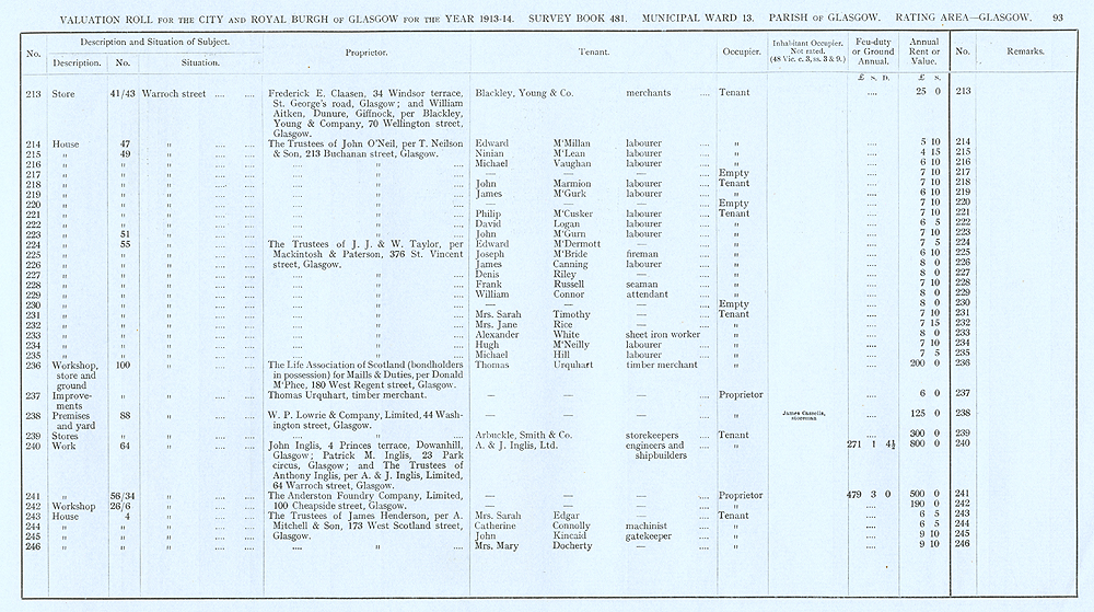 Glasgow Valuation Roll VR 1913-14, Ward 13, p093