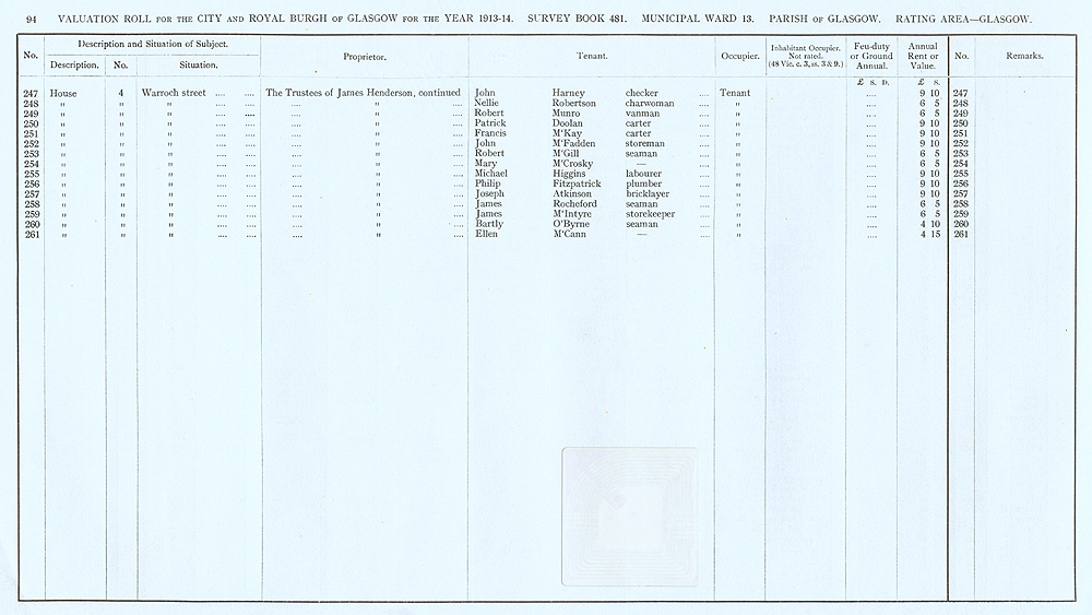 Glasgow Valuation Roll VR 1913-14, Ward 13, p094