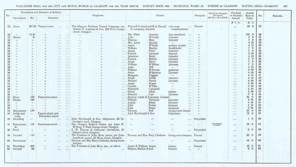 Glasgow Valuation Roll VR 1913-14, Ward 13, p107
