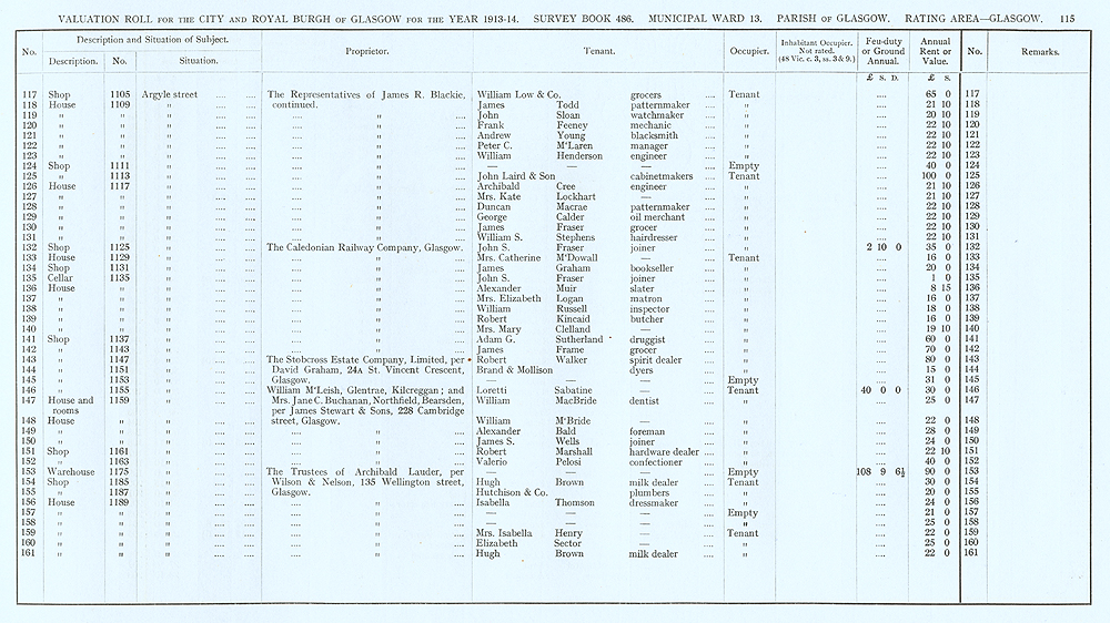 Glasgow Valuation Roll VR 1913-14, Ward 13, p115