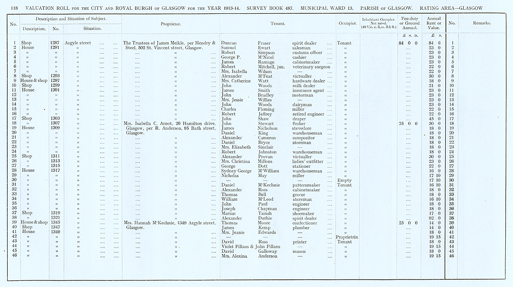 Glasgow Valuation Roll VR 1913-14, Ward 13, p118