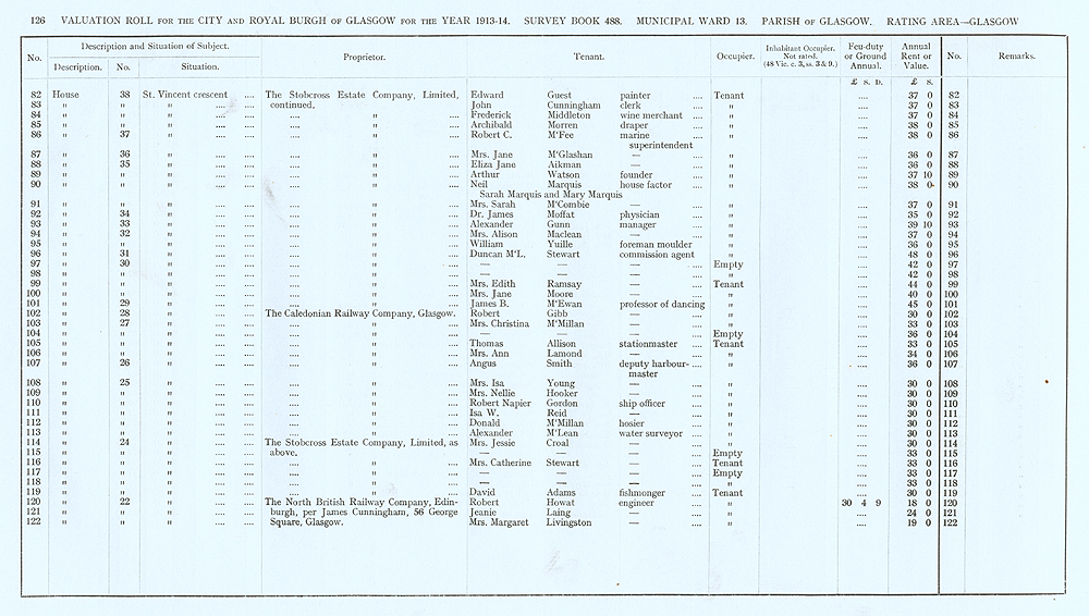 Glasgow Valuation Roll VR 1913-14, Ward 13, p126