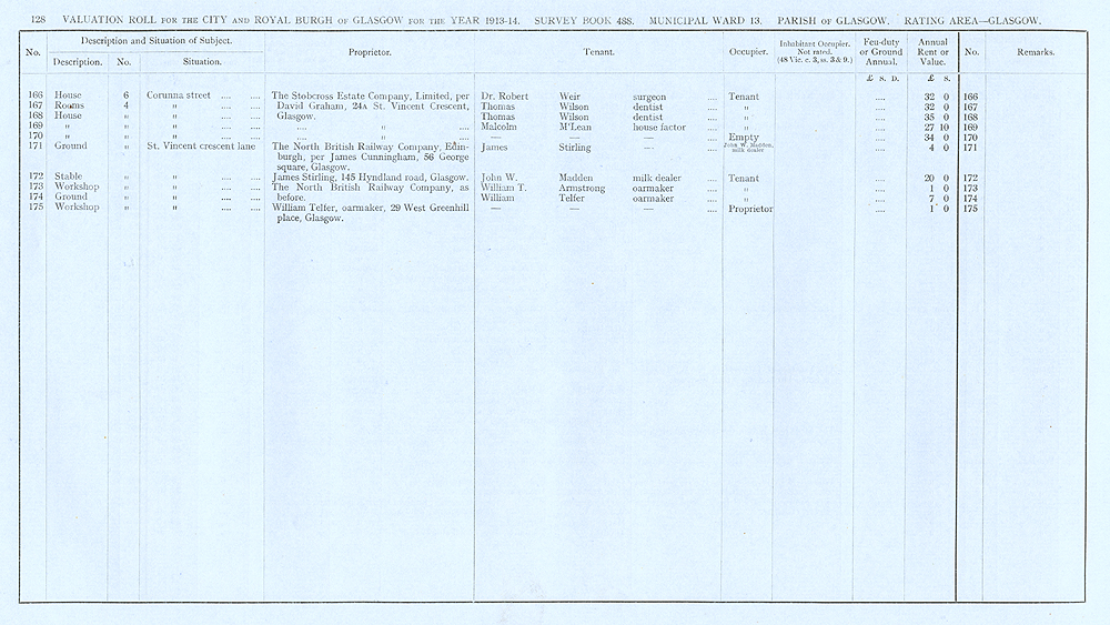 Glasgow Valuation Roll VR 1913-14, Ward 13, p128