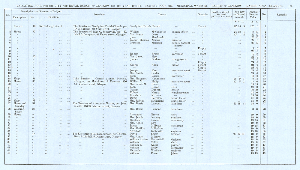 Glasgow Valuation Roll VR 1913-14, Ward 13, p129