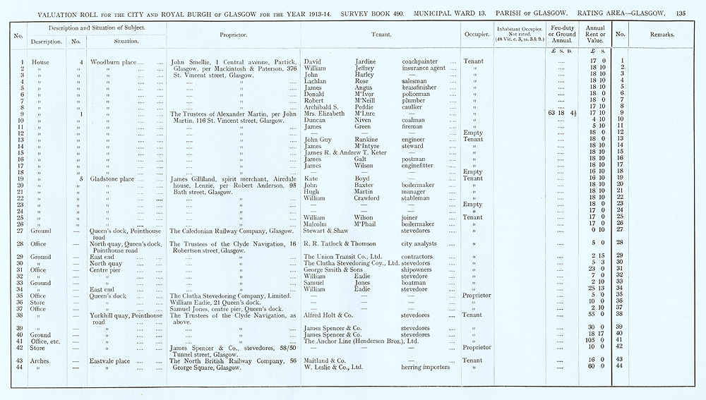 Glasgow Valuation Roll VR 1913-14, Ward 13, p135