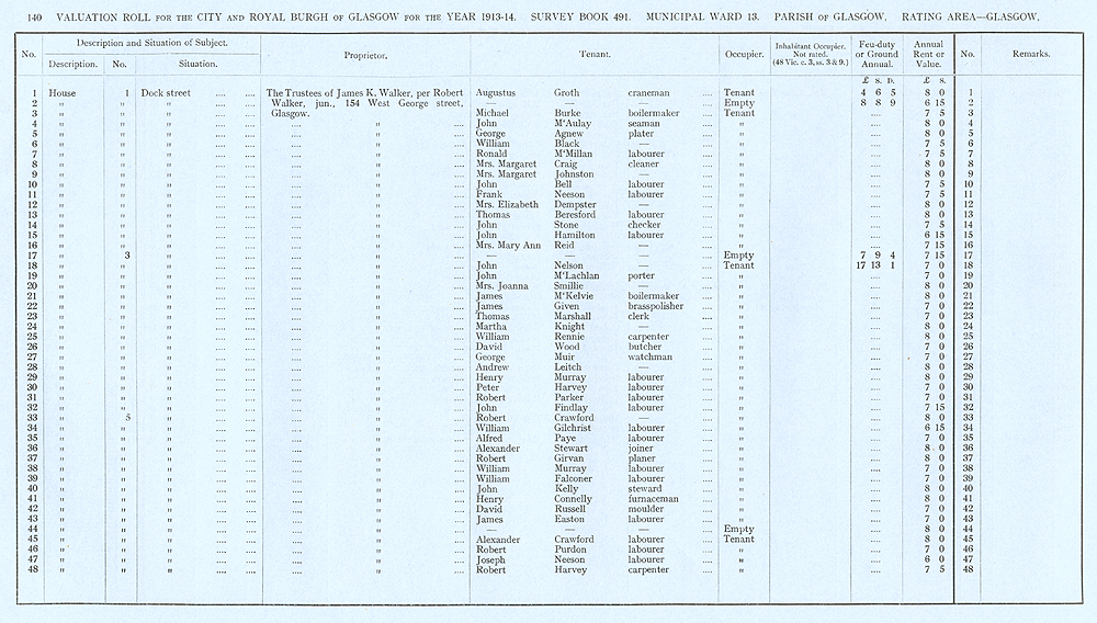Glasgow Valuation Roll VR 1913-14, Ward 13, p140