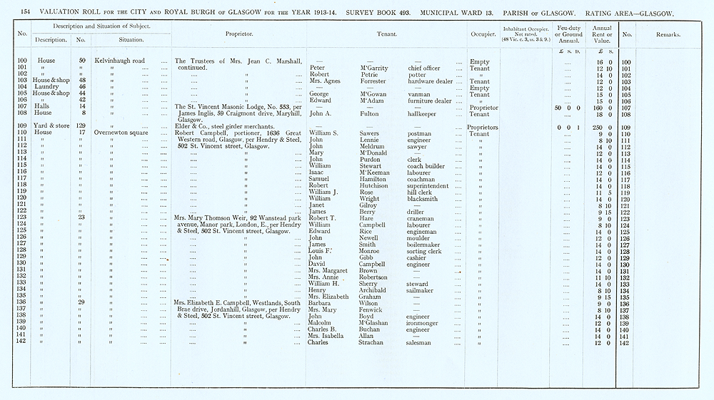Glasgow Valuation Roll VR 1913-14, Ward 13, p154