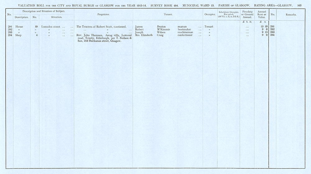 Glasgow Valuation Roll VR 1913-14, Ward 13, p165