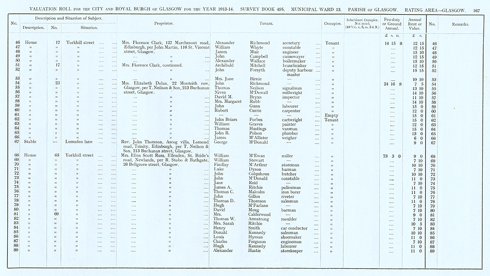 Glasgow Valuation Roll VR 1913-14, Ward 13, p167