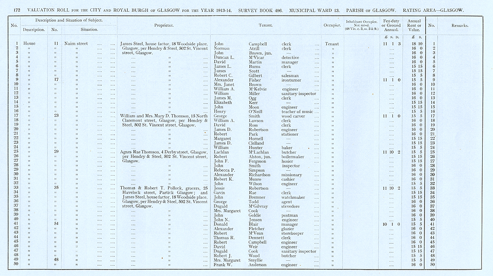 Glasgow Valuation Roll VR 1913-14, Ward 13, p172