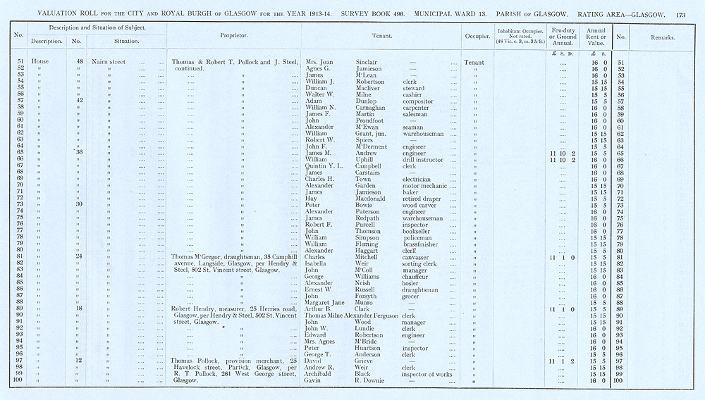 Glasgow Valuation Roll VR 1913-14, Ward 13, p173