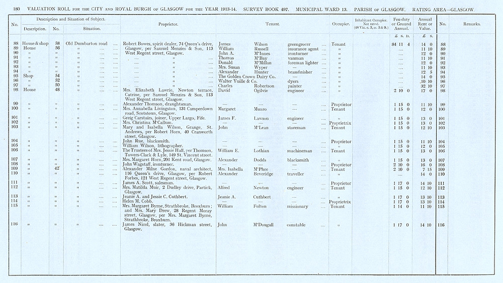 Glasgow Valuation Roll VR 1913-14, Ward 13, p180