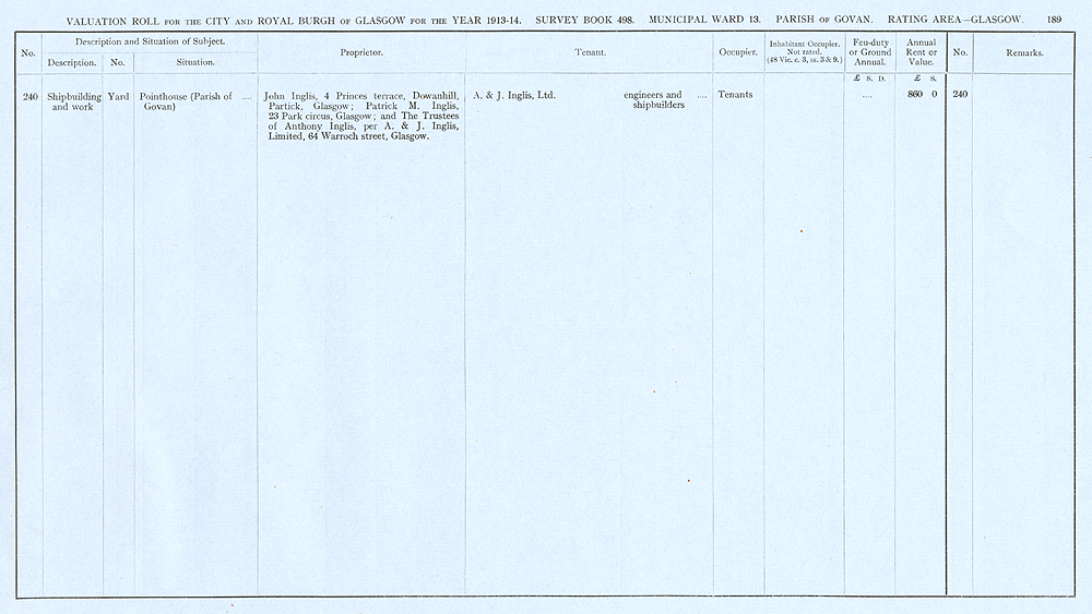 Glasgow Valuation Roll VR 1913-14, Ward 13, p189