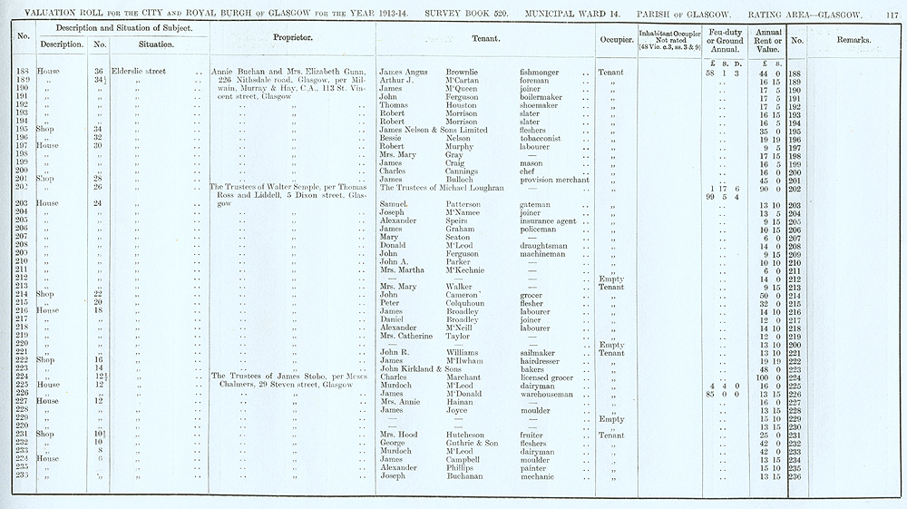 Glasgow Valuation Roll VR 1913-14, Ward 14, p117