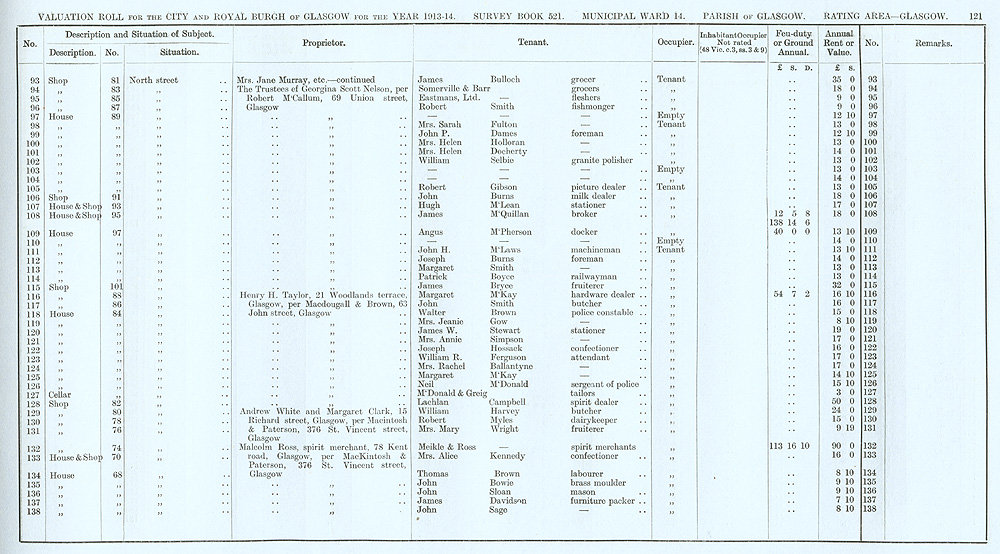 Glasgow Valuation Roll VR 1913-14, Ward 14, p121