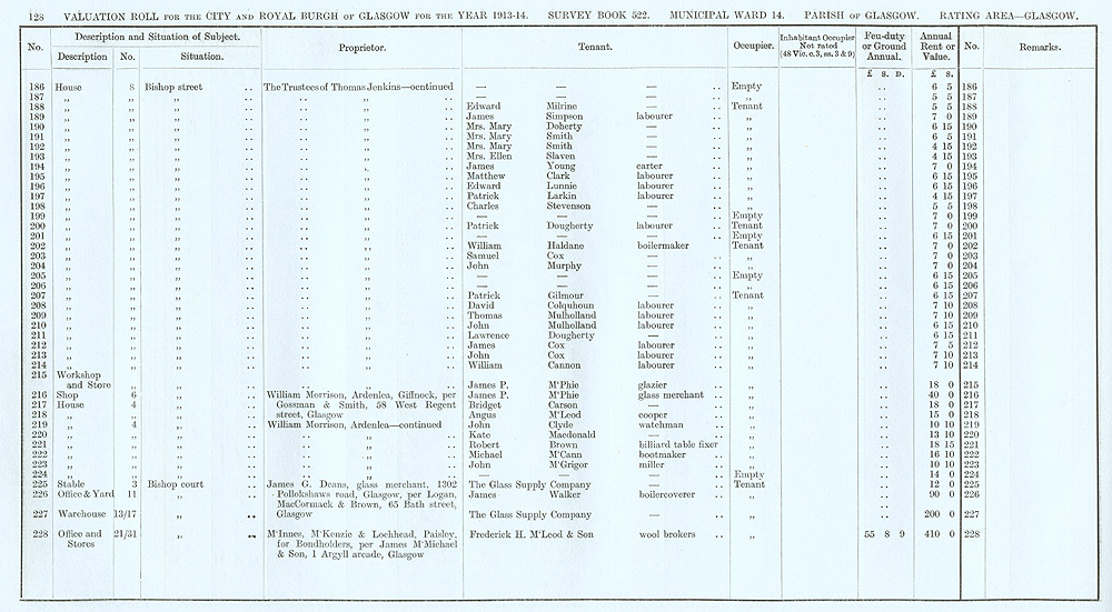 Glasgow Valuation Roll VR 1913-14, Ward 14, p128