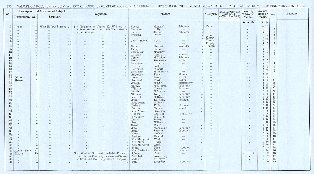 Glasgow Valuation Roll VR 1913-14, Ward 14, p130