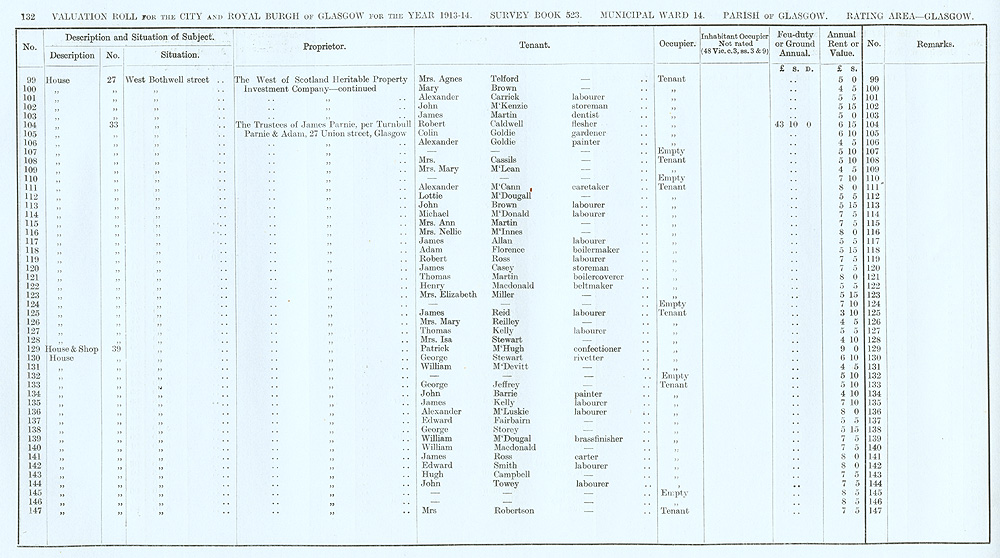 Glasgow Valuation Roll VR 1913-14, Ward 14, p132