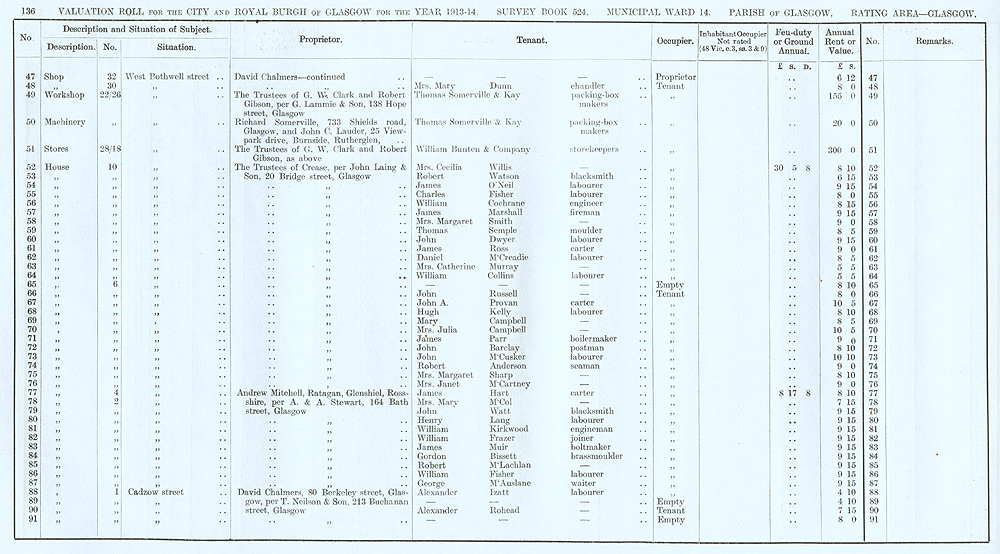 Glasgow Valuation Roll VR 1913-14, Ward 14, p136
