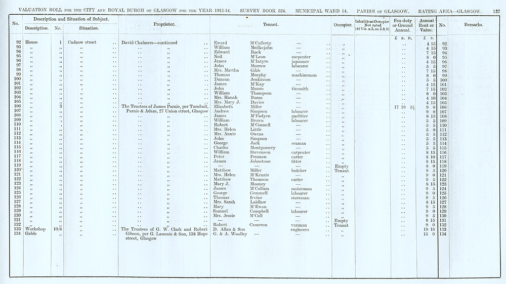 Glasgow Valuation Roll VR 1913-14, Ward 14, p137