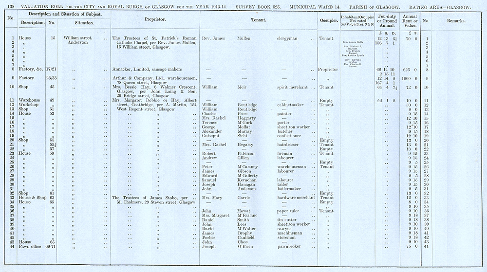 Glasgow Valuation Roll VR 1913-14, Ward 14, p138