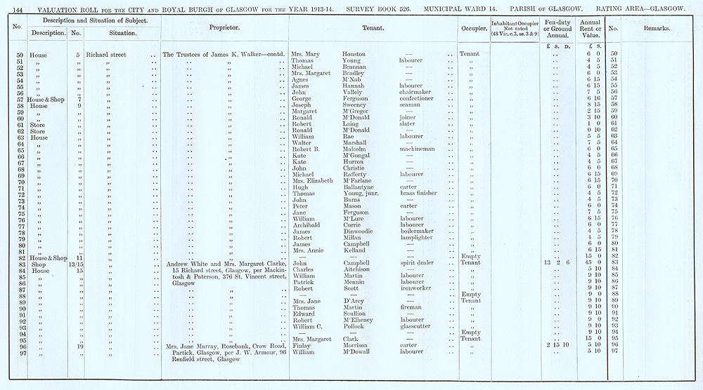 Glasgow Valuation Roll VR 1913-14, Ward 14, p144