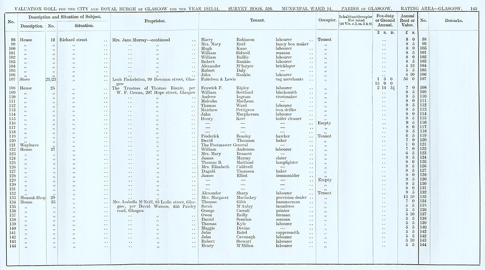 Glasgow Valuation Roll VR 1913-14, Ward 14, p145