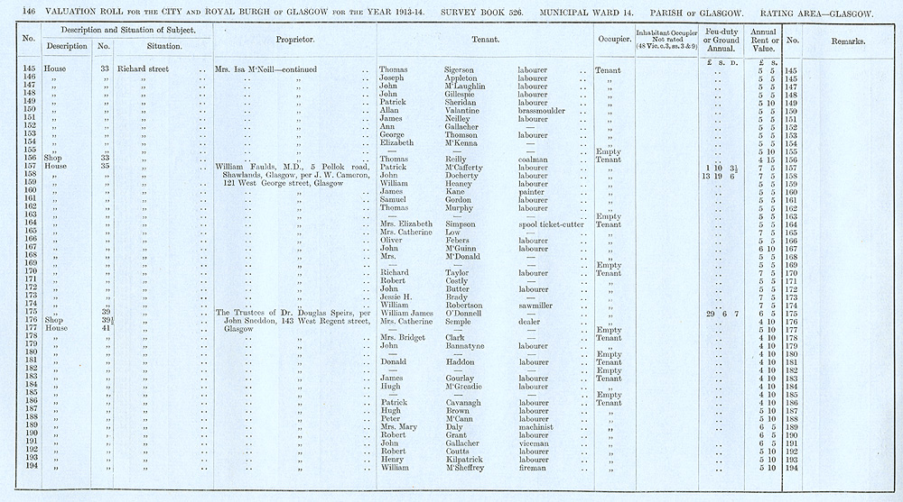 Glasgow Valuation Roll VR 1913-14, Ward 14, p146