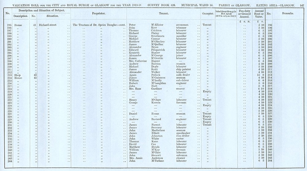 Glasgow Valuation Roll VR 1913-14, Ward 14, p147