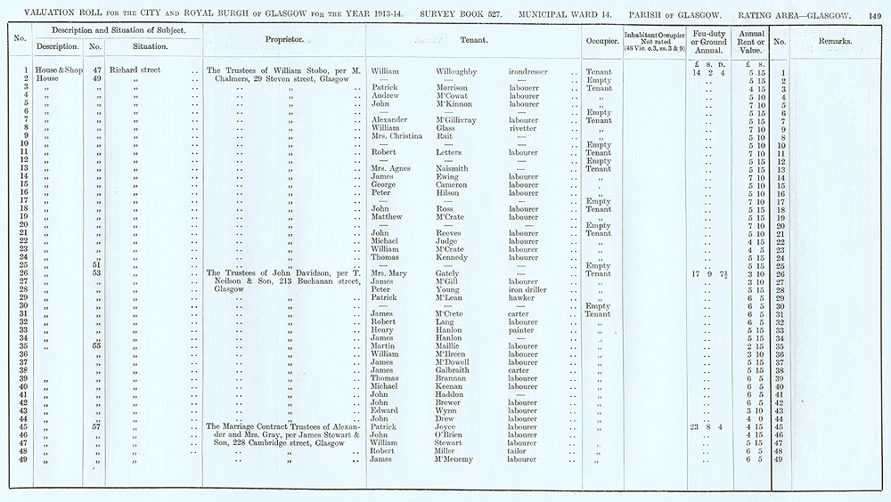 Glasgow Valuation Roll VR 1913-14, Ward 14, p149