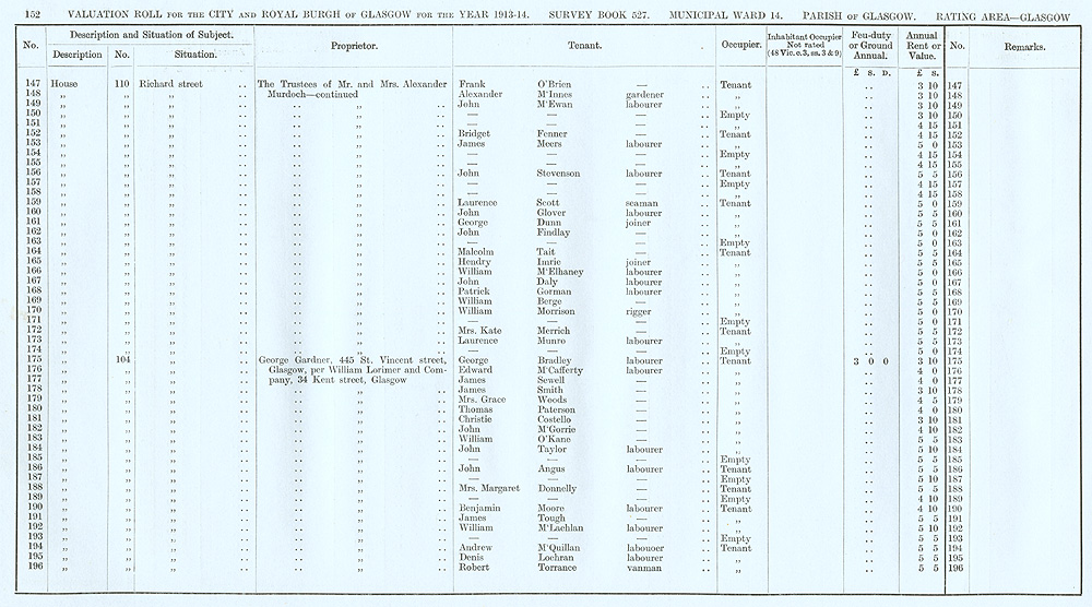 Glasgow Valuation Roll VR 1913-14, Ward 14, p152