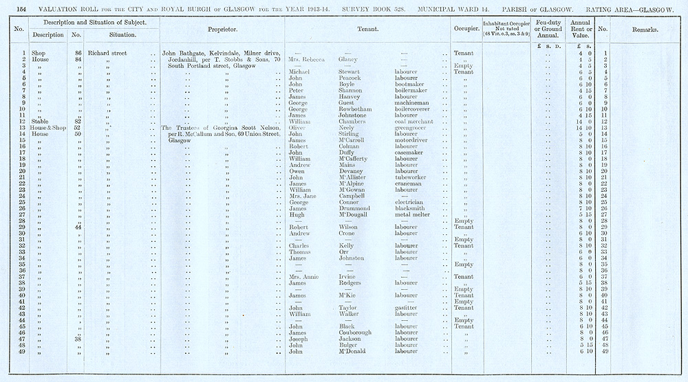 Glasgow Valuation Roll VR 1913-14, Ward 14, p154