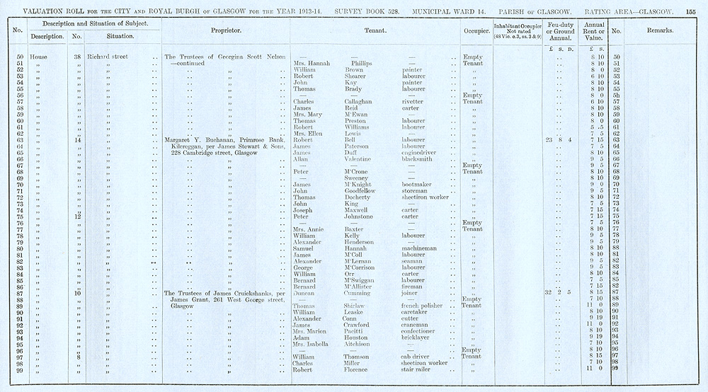 Glasgow Valuation Roll VR 1913-14, Ward 14, p155