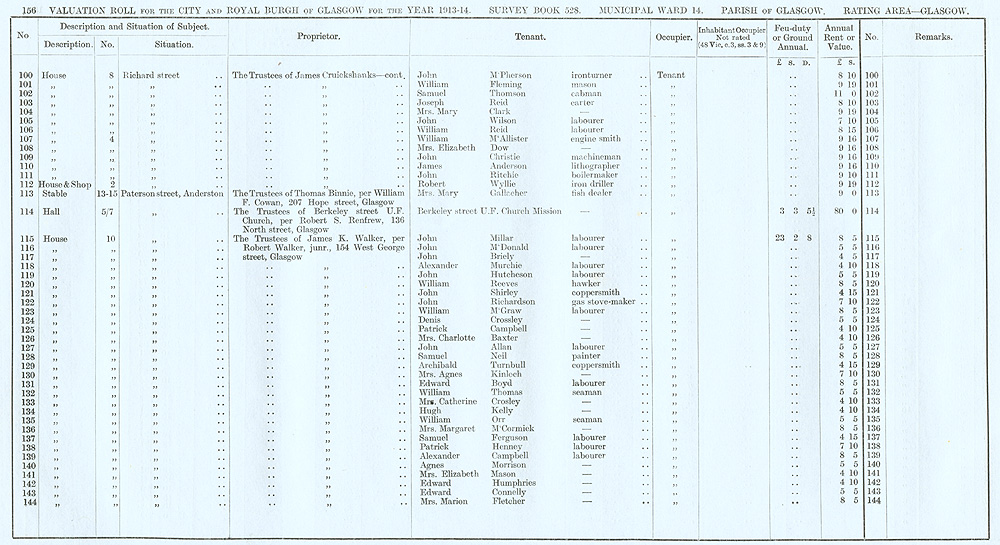 Glasgow Valuation Roll VR 1913-14, Ward 14, p156