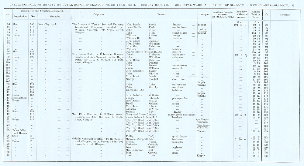 Glasgow Valuation Roll VR 1913-14, Ward 15, p039