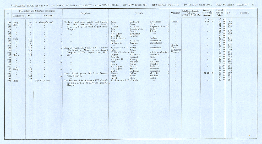 Glasgow Valuation Roll VR 1913-14, Ward 15, p043