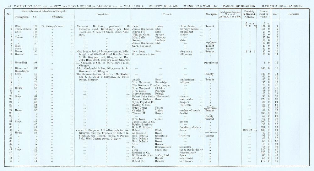 Glasgow Valuation Roll VR 1913-14, Ward 15, p044