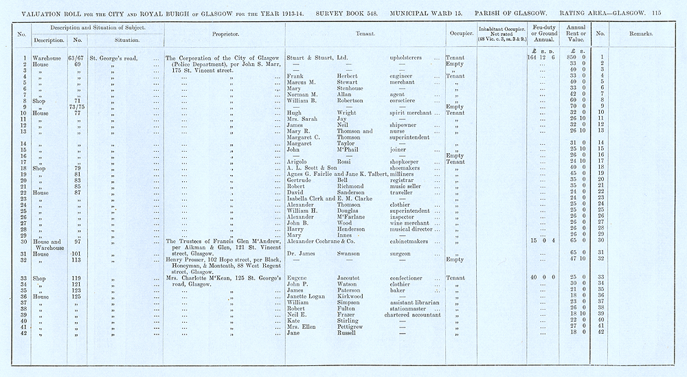 Glasgow Valuation Roll VR 1913-14, Ward 15, p115