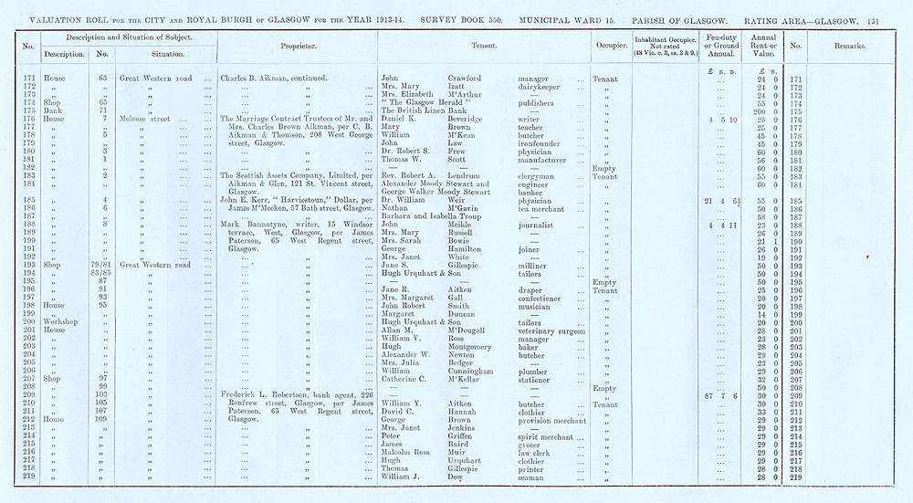 Glasgow Valuation Roll VR 1913-14, Ward 15, p131