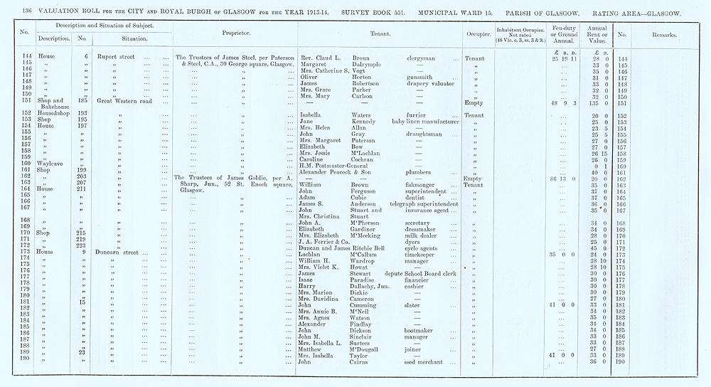 Glasgow Valuation Roll VR 1913-14, Ward 15, p136