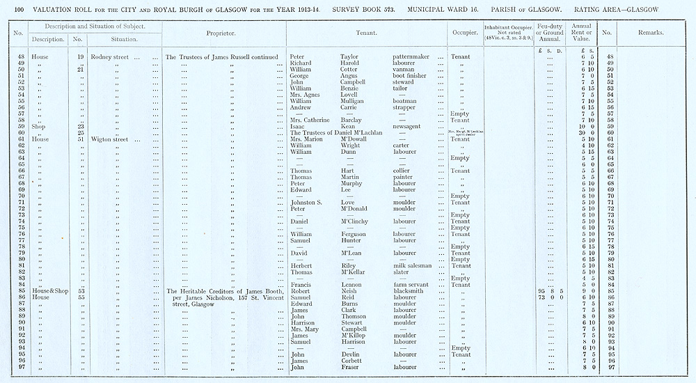 Glasgow Valuation Roll VR 1913-14, Ward 16, p100