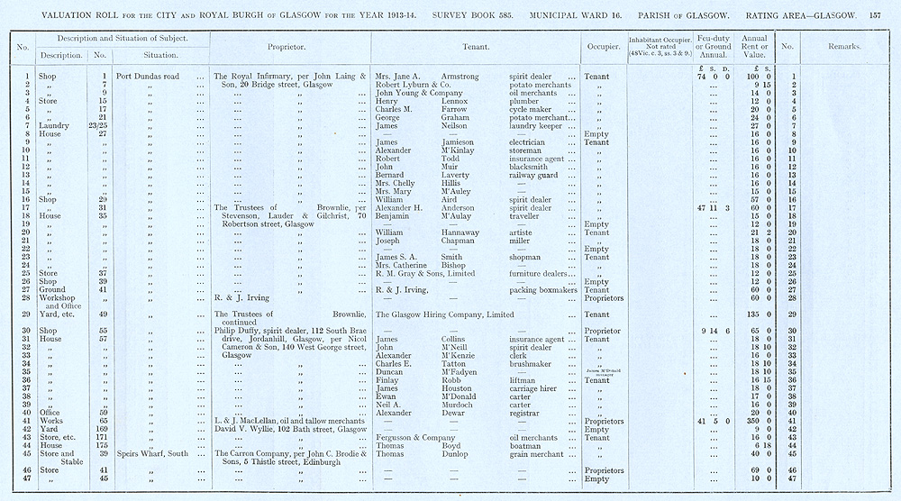 Glasgow Valuation Roll VR 1913-14, Ward 16, p157