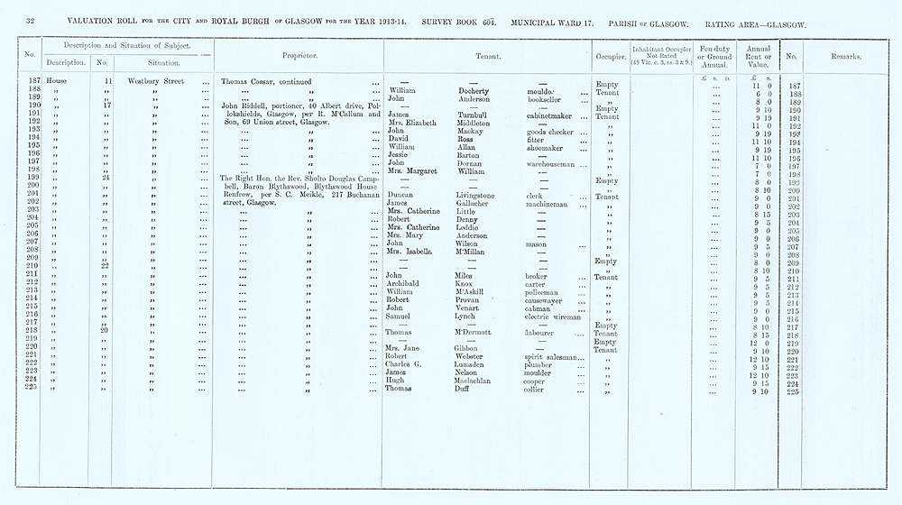 Glasgow Valuation Roll VR 1913-14, Ward 17, p032