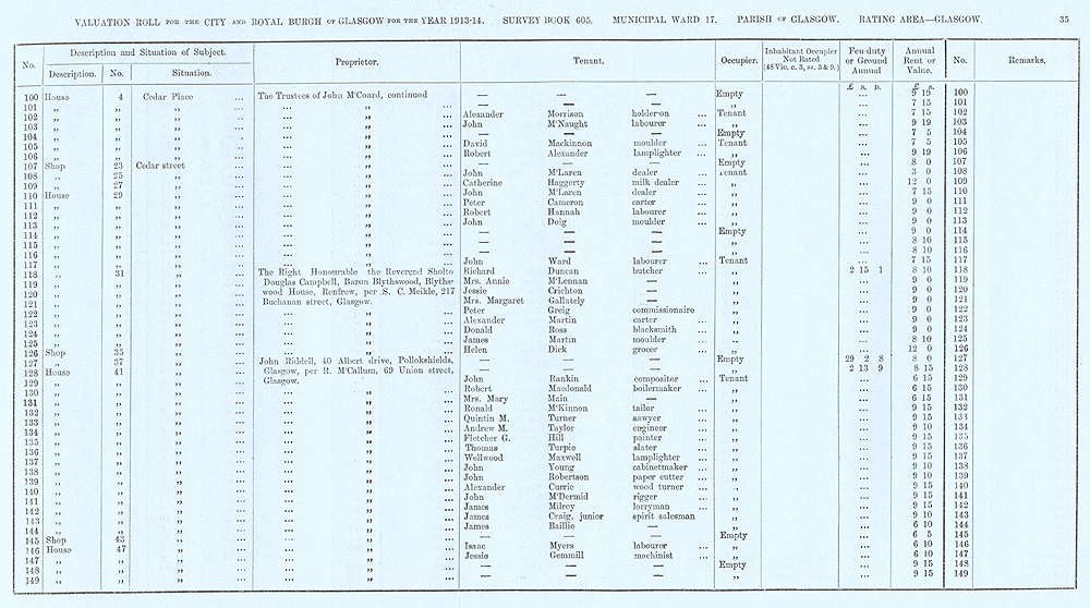 Glasgow Valuation Roll VR 1913-14, Ward 17, p035