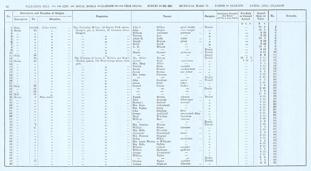 Glasgow Valuation Roll VR 1913-14, Ward 17, p038