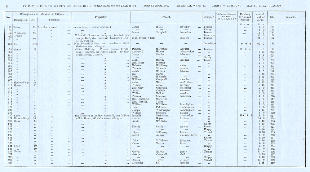 Glasgow Valuation Roll VR 1913-14, Ward 17, p042