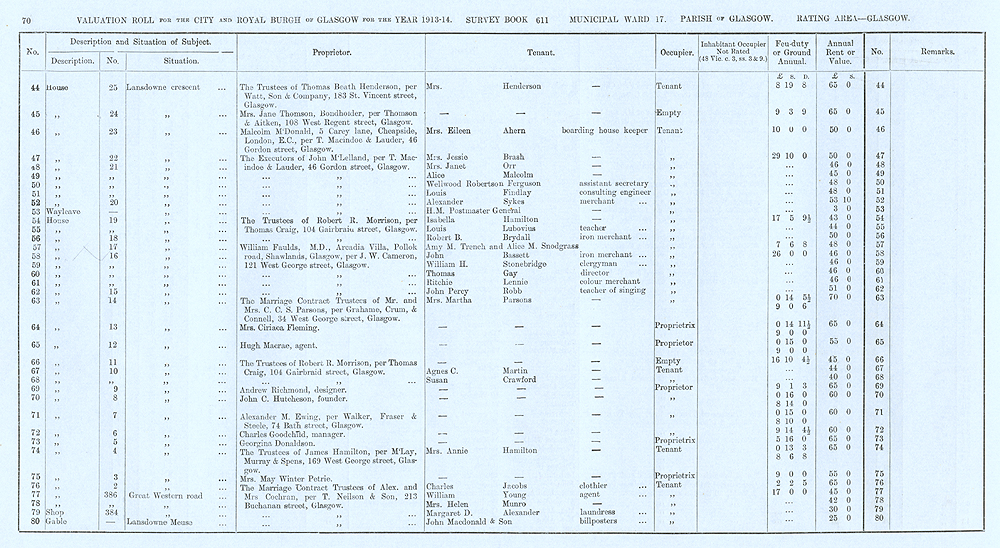 Glasgow Valuation Roll VR 1913-14, Ward 17, p070