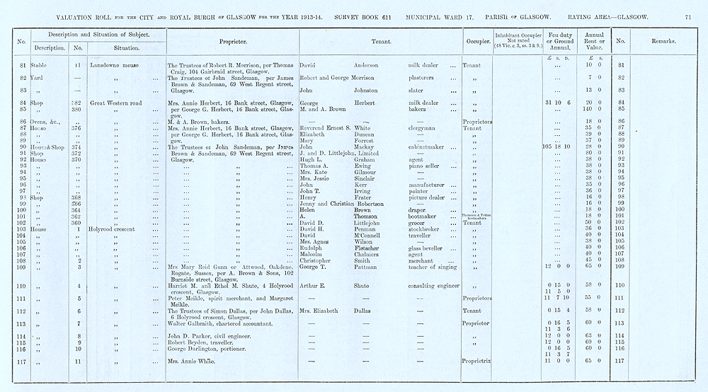 Glasgow Valuation Roll VR 1913-14, Ward 17, p071